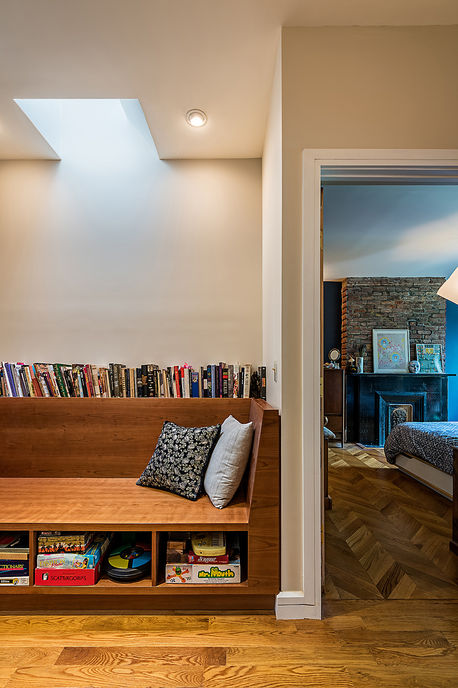 The renovation and addition to a row house in the evolving neighborhood of Bedford-Stuyvesant Brooklyn. The existing building was in poor shape but possessed a lot of architectural merit. Our team worked closely with the clients on a tight budget to envision a home that capitalizes on the historic elements of the house while providing for modern living and creative interventions.